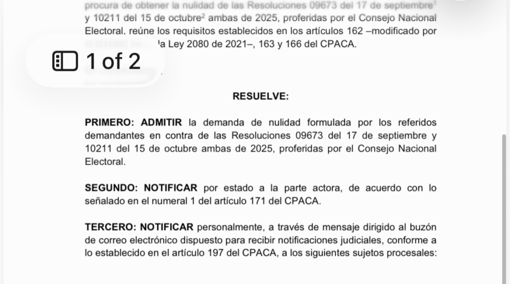 Con la admisión de la demanda, se abre un periodo de revisión que podría tener implicaciones políticas, especialmente en el momento actual en que el Pacto Histórico se prepara para la presentación de candidaturas y su participación en las elecciones legislativas y presidenciales previstas para 2026.