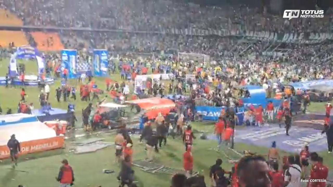 Los desmanes se iniciaron minutos después de que Atlético Nacional se coronara campeón del certamen tras vencer 1-0 a su rival de patio. Según los reportes oficiales y videos de seguridad, una facción de la hinchada del equipo perdedor, ubicada en la tribuna norte y occidental, invadió la gramilla armada con objetos cortopunzantes, sillas y palos, intentando impedir la celebración del título verdolaga. La situación derivó en una batalla campal sobre el césped que requirió la intervención de la Unidad de Diálogo y Mantenimiento del Orden (Undmo) para retomar el control del escenario deportivo.