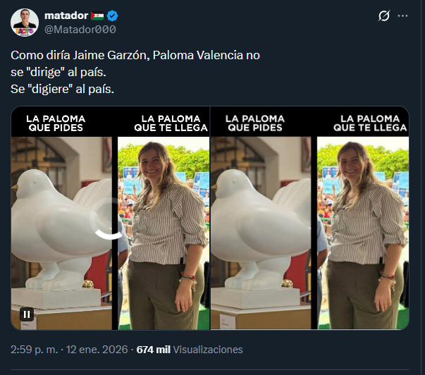 Miles de ciudadanos replicaron tanto la publicación original de Matador como las respuestas de líderes políticos, generando hashtags de apoyo a Paloma Valencia que se mantuvieron entre los temas más comentados de la plataforma durante la mañana de este lunes.