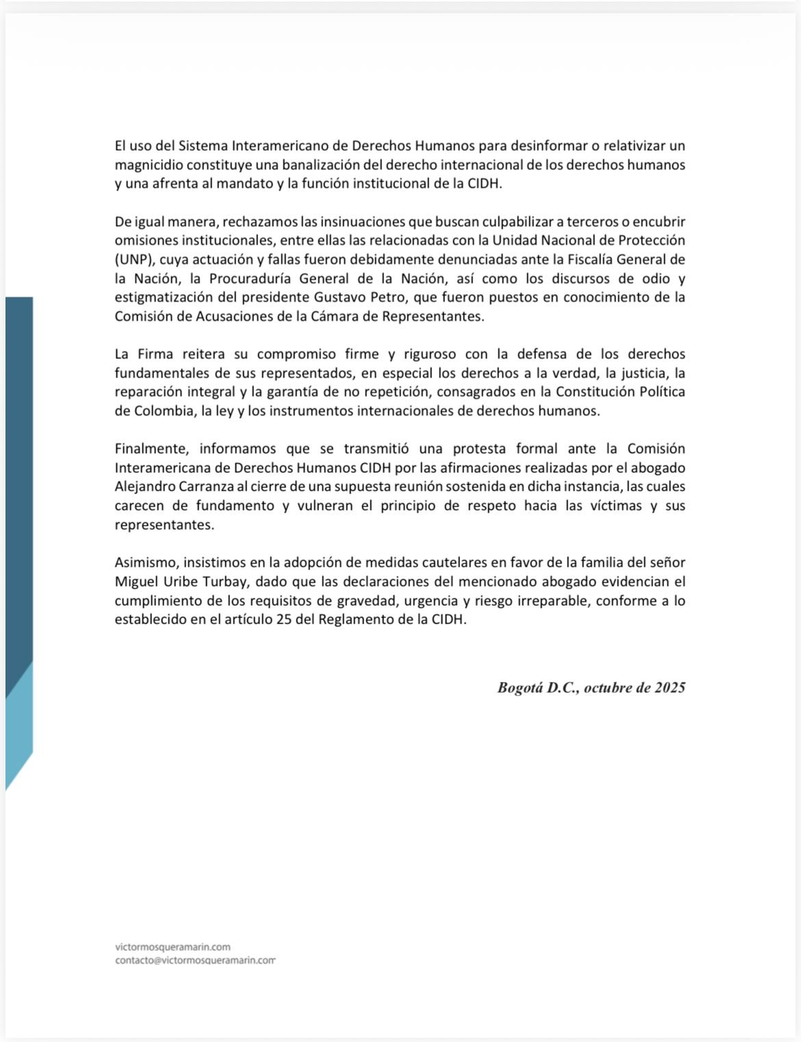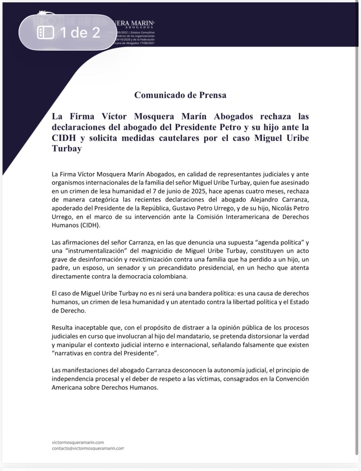 Uribe Londoño ha responsabilizado políticamente al mandatario nacional por “hostigar” públicamente a su hijo, afirmando que esa tensión contribuyó al clima en el que se cometió el homicidio. No obstante, aclaró que no lo considera autor intelectual del crimen.