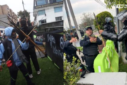 En Bogotá manifestantes lanzan flechas y hieren a cuatro policías frente a la Embajada de EE. UU.